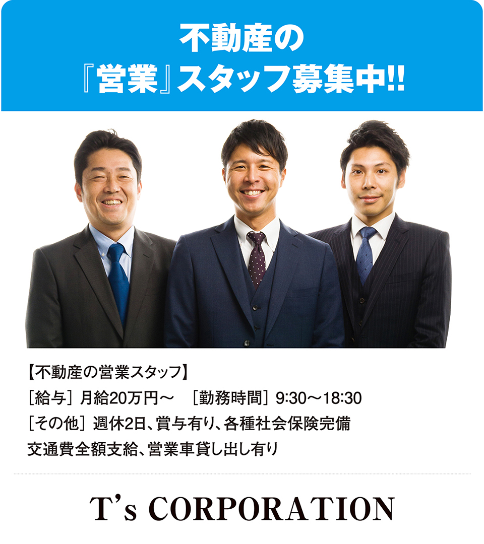 お客様のライフスタイルに合わせた機能的でデザイン性の高い家創りをモットーに、奈良県の中南和エリアを中心に、新築分譲販売、仲介、リフォームを手掛ける『ティーズコーポレーション』です。現在分譲中の物件に関してはホームページをご覧ください。
