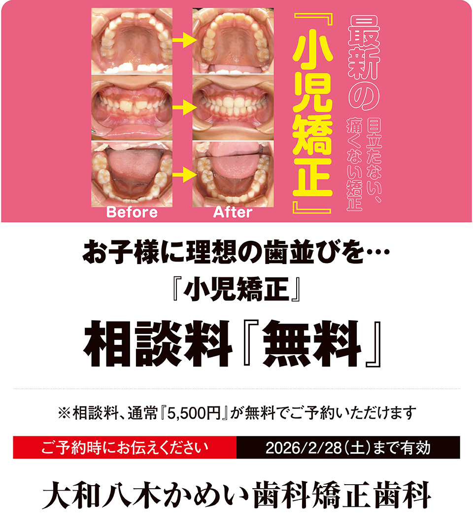 こどもの矯正(小児矯正)は、乳歯から永久歯に生え変わる時期を目安に、お子さんに合った矯正の時期を決めていくことが重要です。かみ合わせの良いきれいな歯並びは、お口の健康からカラダの健康にもつながります。